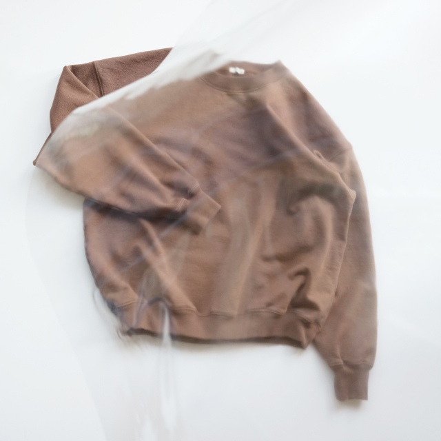 和歌山にある丸編み工場にお願いし、エイジング加工を施したピマ綿(双糸)で編みたてた裏毛。