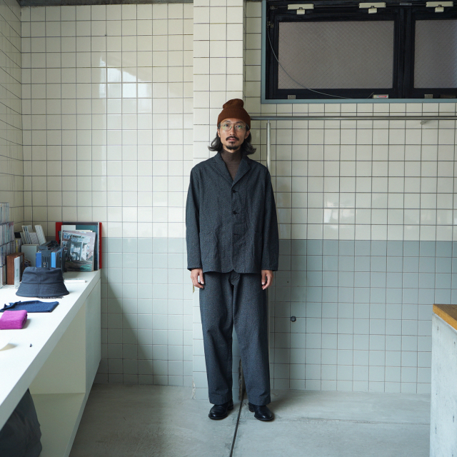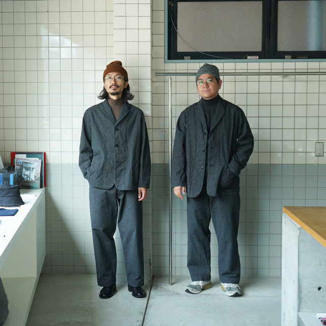 古着好きにもファンの多い生地ですが、HERILLならではの感覚でモダナイズされたワークジャケットとワークパンツは、今、これから、着たくなるバランスです。