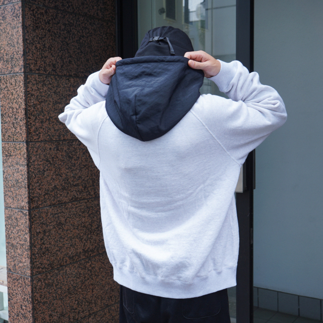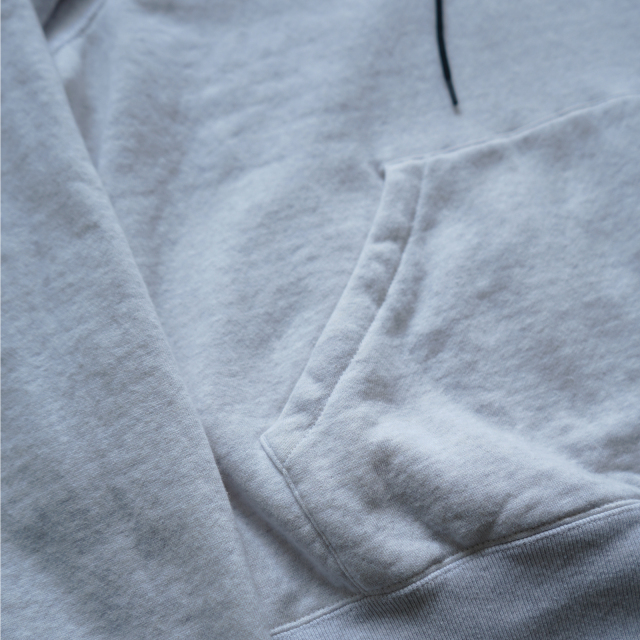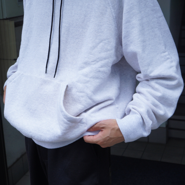 ボディは柔らかなコットン裏毛、着込むほどに体に馴染んでいく感覚があります。