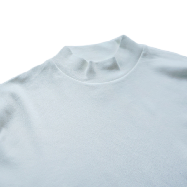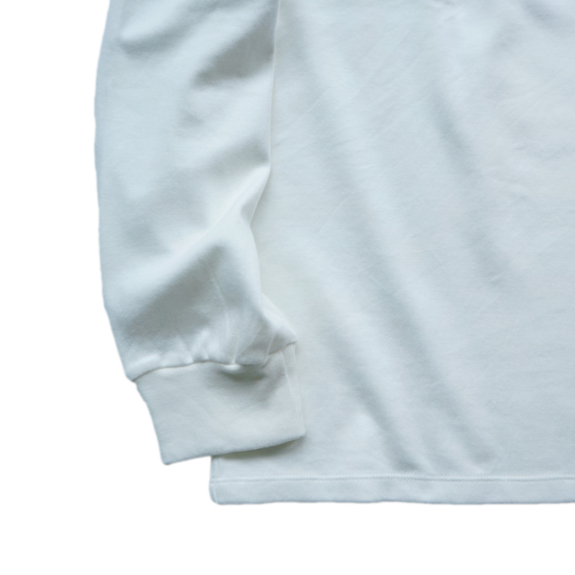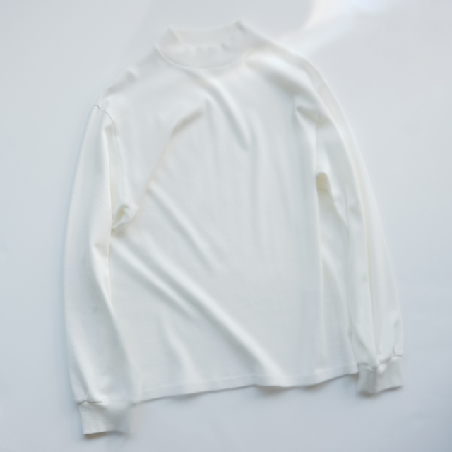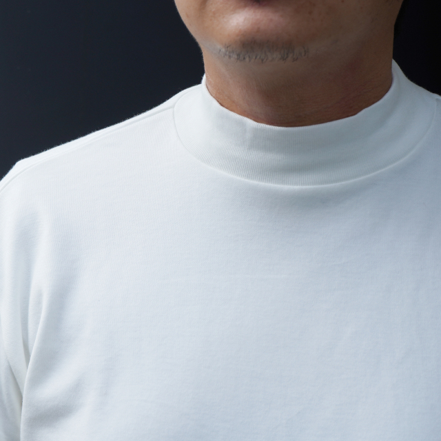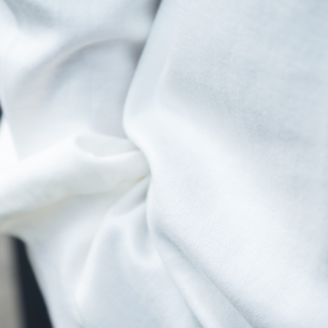 和歌山にある丸編み工場にお願いをし、エイジング加工を施したピマ綿で紡績した糸を使用して編み立てた、表裏のないオリジナルのニットスムース。