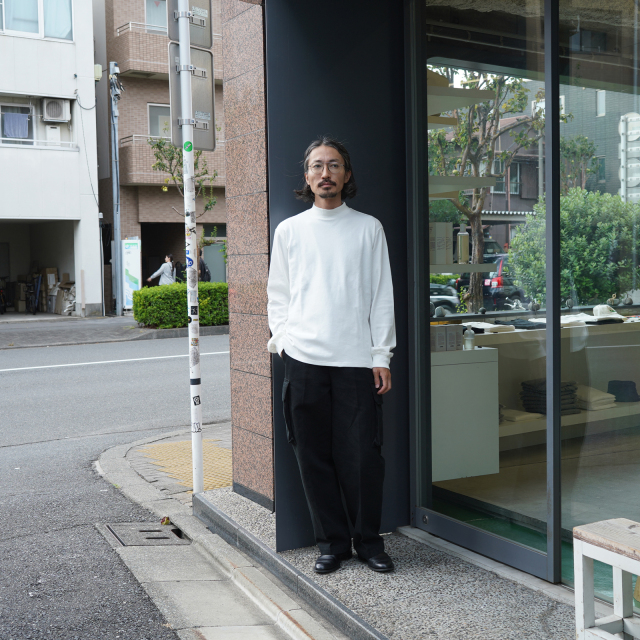 バランスとしては、肩を少し落とし、リラックスした独特のシルエット。