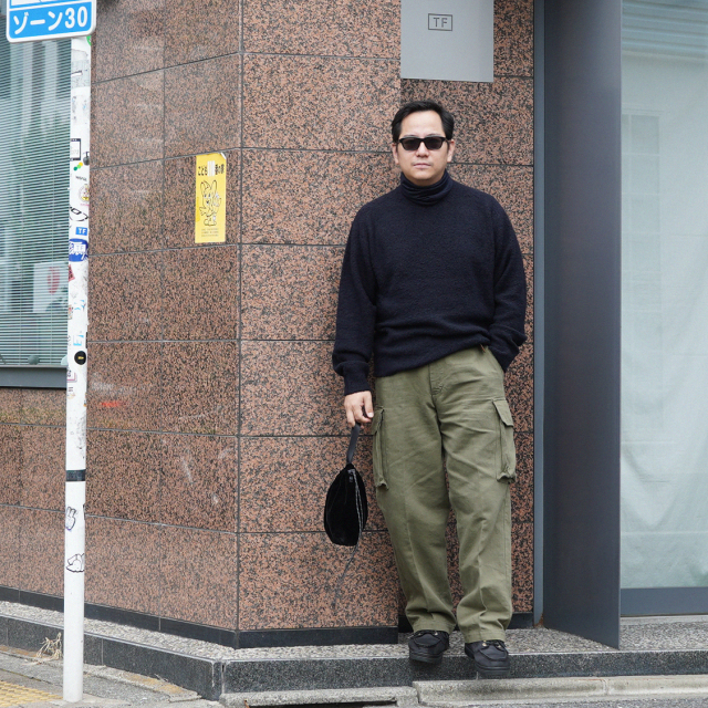 岡本 : 身長175cm , 体重55kg , Size : 3を着用。
