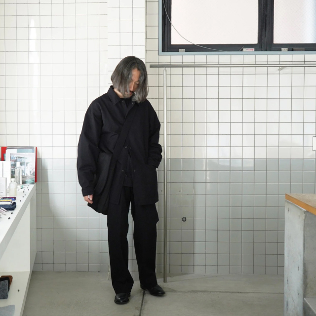 腰のフラップポケットにドット釦のみとシンプルなディテールで、匿名性の高さも魅力的。