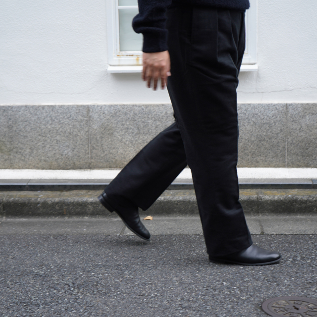 表面は柔らかく起毛させており、季節感を楽しめつつ、快適に、品良く穿くことが出来る一本。