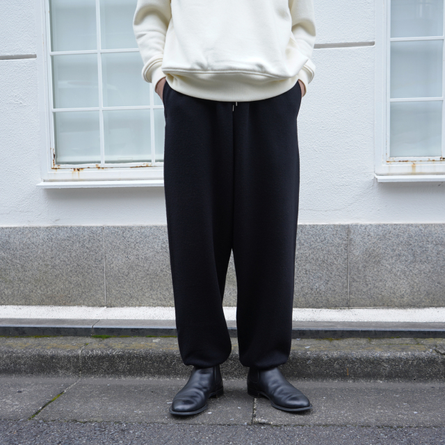 いわゆるコットンのスウェットのセットアップはラフに感じて敬遠される方もいらっしゃるかもしれませんが、この生地感なら取り入れていただき易いんじゃないでしょうか。