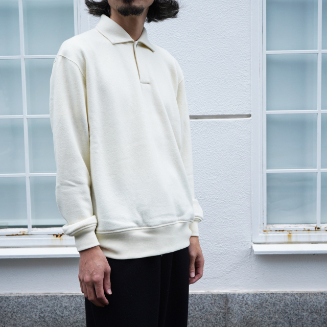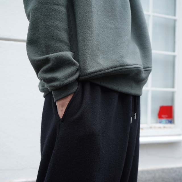 いわゆるコットンのスウェットのセットアップはラフに感じて敬遠される方もいらっしゃるかもしれませんが、この生地感なら取り入れていただき易いんじゃないでしょうか。