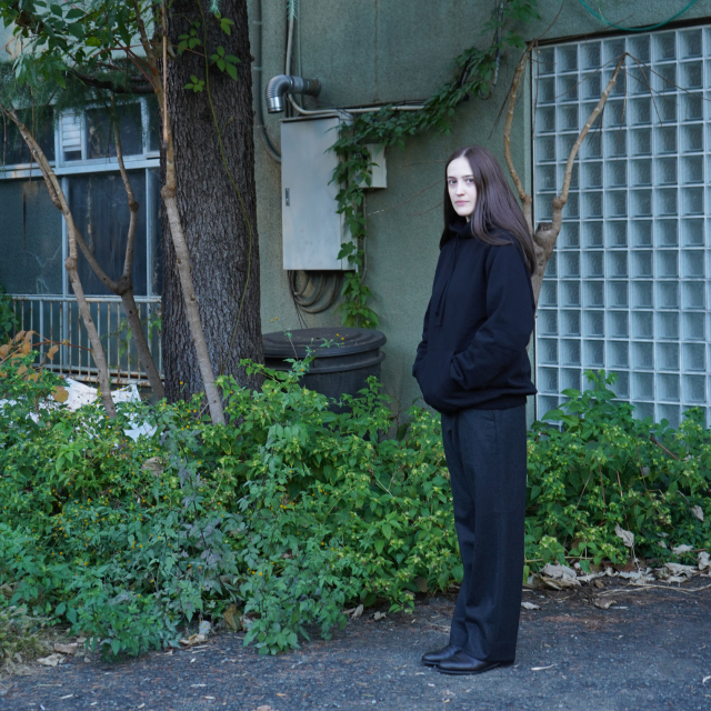 岡本 : 身長175cm , 体重55kg , Size : 2を着用。