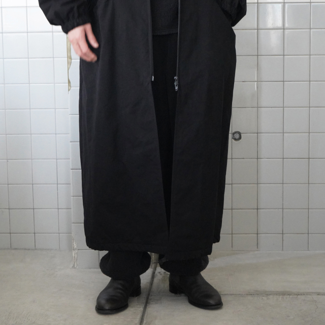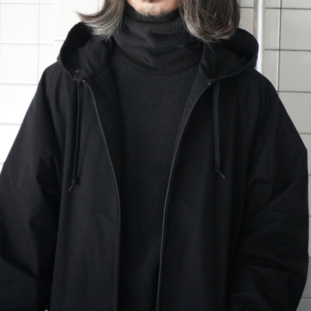 しっかりロング丈のフーデッドコート。