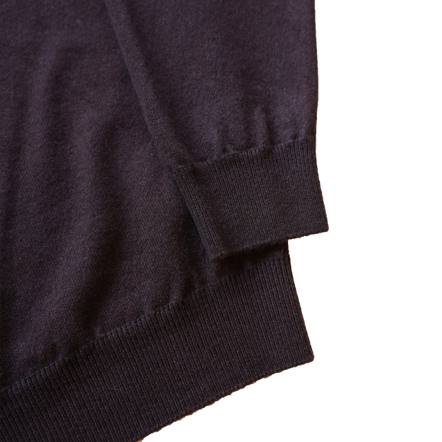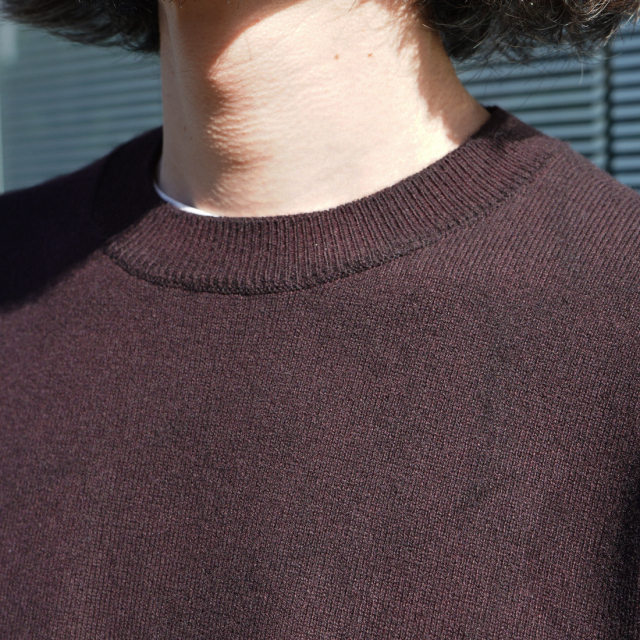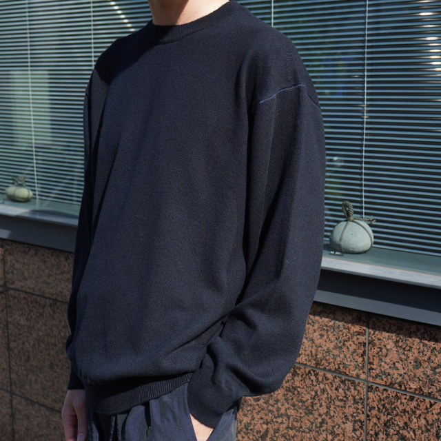 極限まで度詰めで編み込んだリッチな重量感はそのままに、自然な落ち感のある風合いのあるニット。