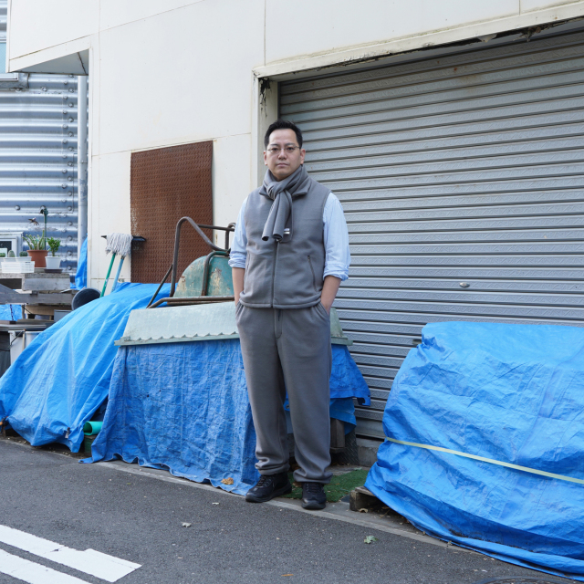 岡本 : 身長175cm , 体重55kg , Size : 1を着用。