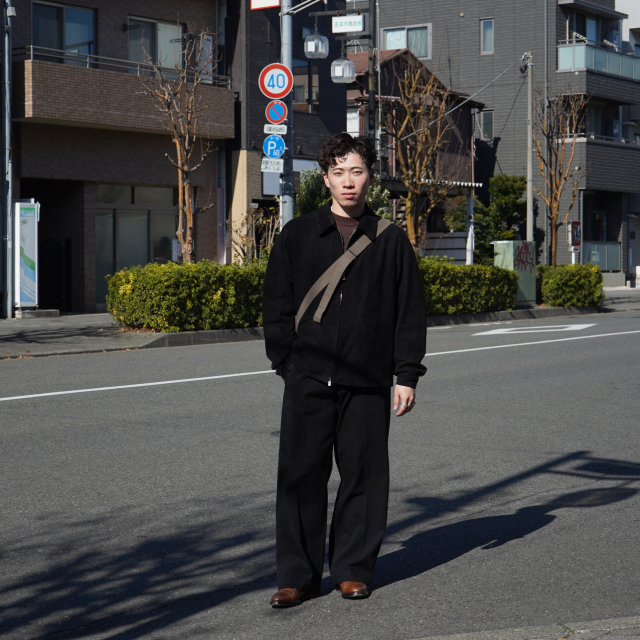 岡本 : 身長175cm , 体重55kg , Size : 3を着用。